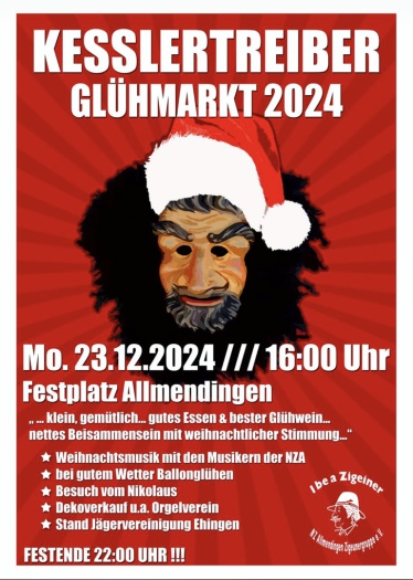 Herzliche Einladung zum 12. Glühmarkt der Kesslertreiber am 23. Dezember 2024 auf dem Festplatz in Allmendingen.